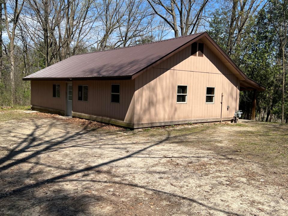 - A water pump and latrine are located just outside the cabin